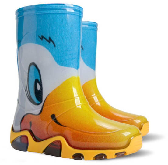 A demar STORMER PRINT színű csizma ideális az esős nyári időjáráshoz. A csizma színe kék-fehér-sárga, amely egy kacsát imitál. Vastagabb, csúszásmentes talppal rendelkeznek a biztonságos járás érdekében. A csizma nagyon kényelmes és könnyű. Anyaga kiváló minőségű és tartós PVC, kellemes anyaggal bélelt. A cipő sarkán biztonsági fényvisszaverő csík található, hogy a gyermek jól látható legyen a sötétben. Az EU-ban készült. Méret 24/25 - súly 416 g