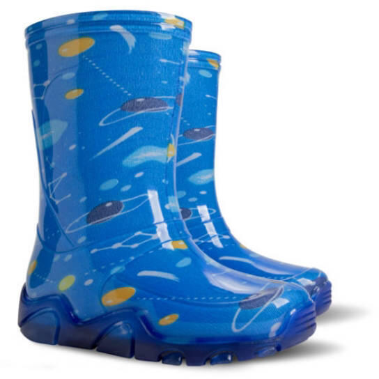 A fiú színes demar STORMER PRINT csizma ideális az esős nyári időjáráshoz. A csizma színe kék, melyet stílusosan egészítenek ki a színes bolyhok. Vastagabb, csúszásmentes talppal rendelkeznek a biztonságos járás érdekében. A csizma nagyon kényelmes és könnyű. Anyaga kiváló minőségű és tartós PVC, kellemes anyaggal bélelt. A cipő sarkán biztonsági fényvisszaverő csík található, hogy a gyermek jól látható legyen a sötétben. Az EU-ban készült. Méret 24/25 - súly 416 g