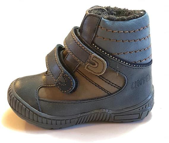 LINEA valódi bőr, bundás béléses téli bakancs fiúknak kék-barna színben,   Cipő jellemzői: